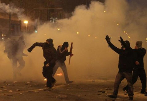 Straßenschlachten der Anarchisten mit der